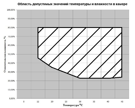 Камера обеспечивает поддержание температуры воздуха в камере (20 ± 2) °С и влажности (60 ±10) %.