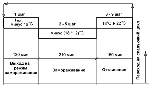 4) и так далее цикл за циклом в автоматическом режиме. Количество циклов заморозки и оттайки задается по прибору.