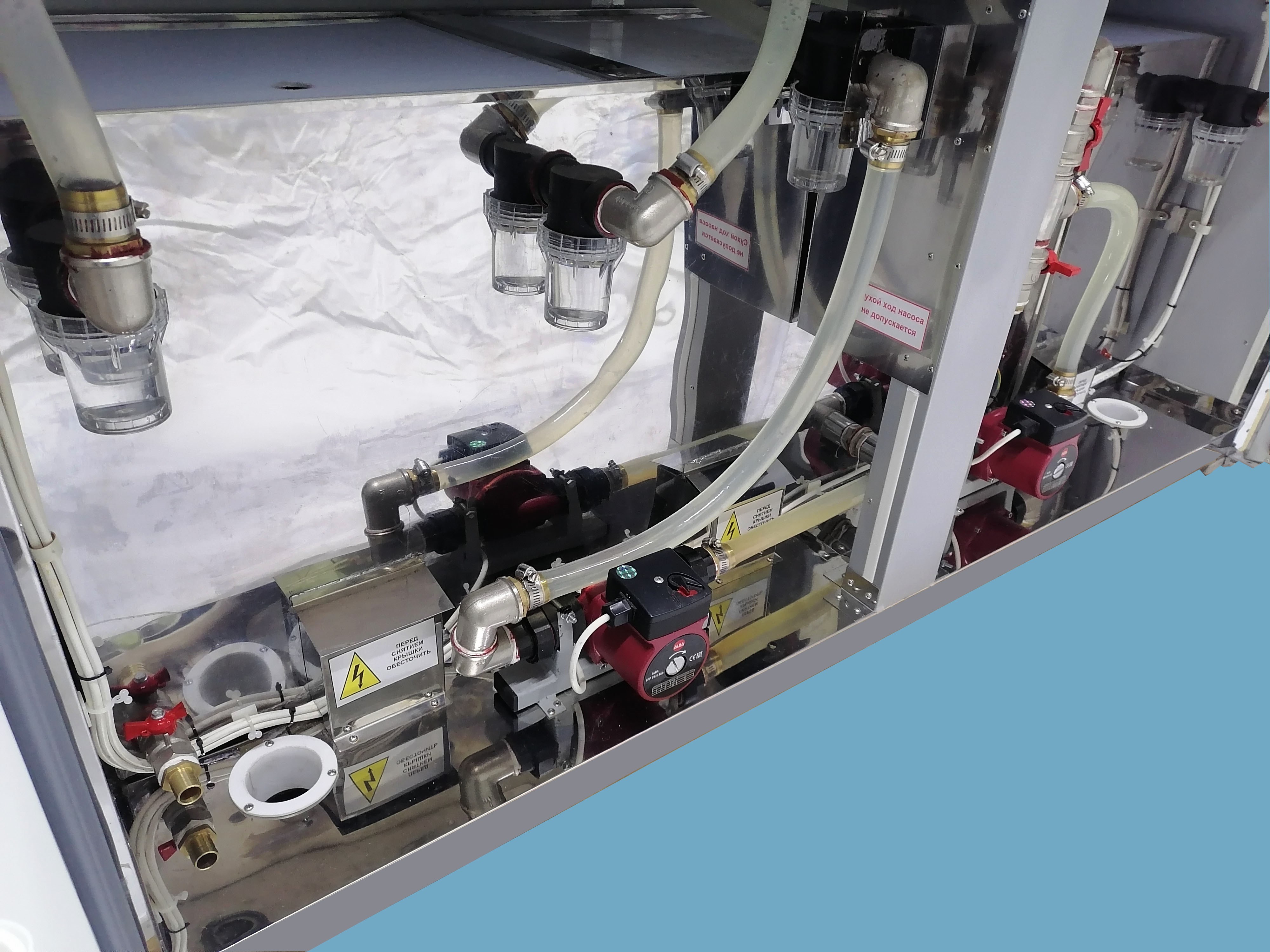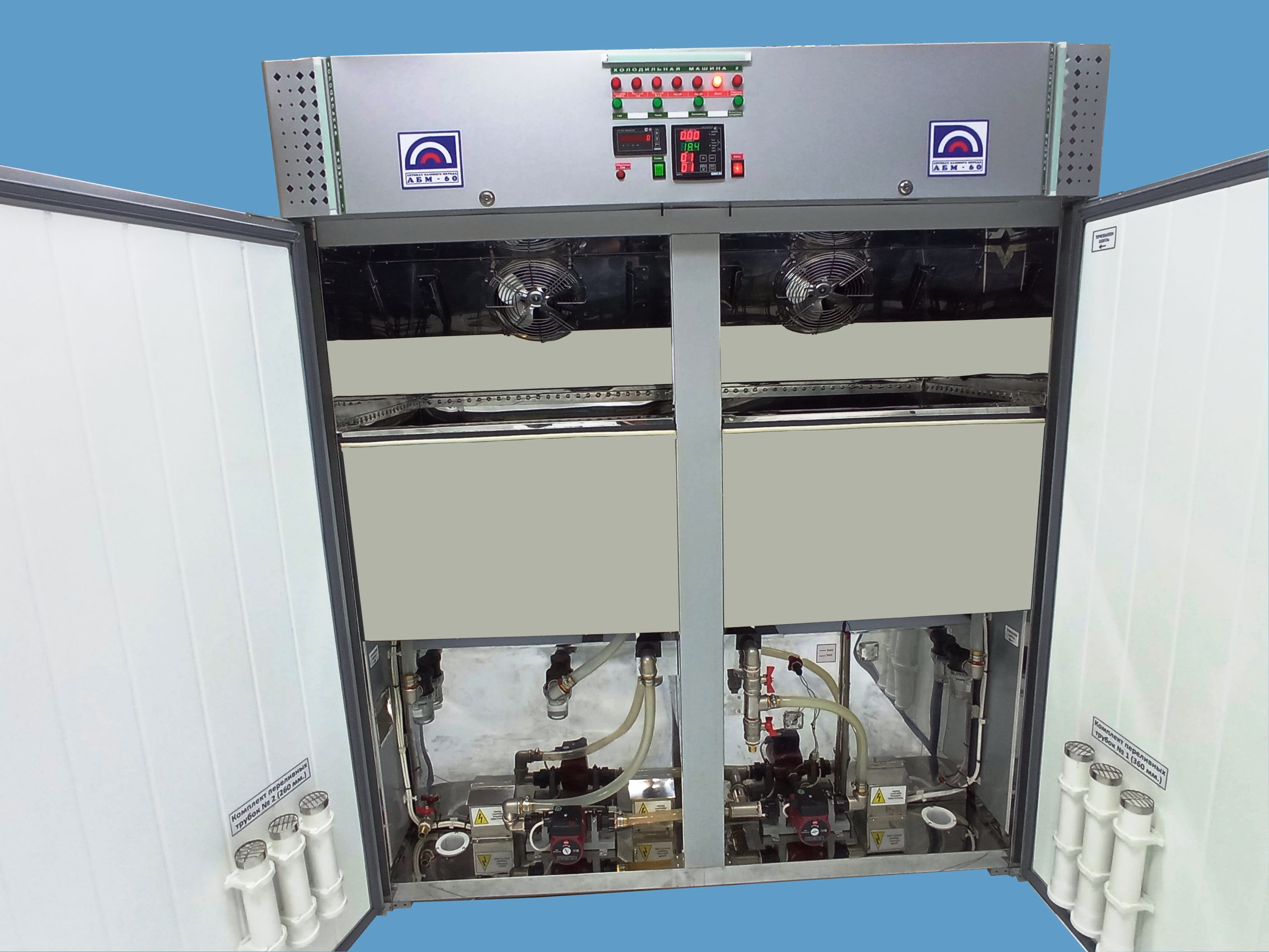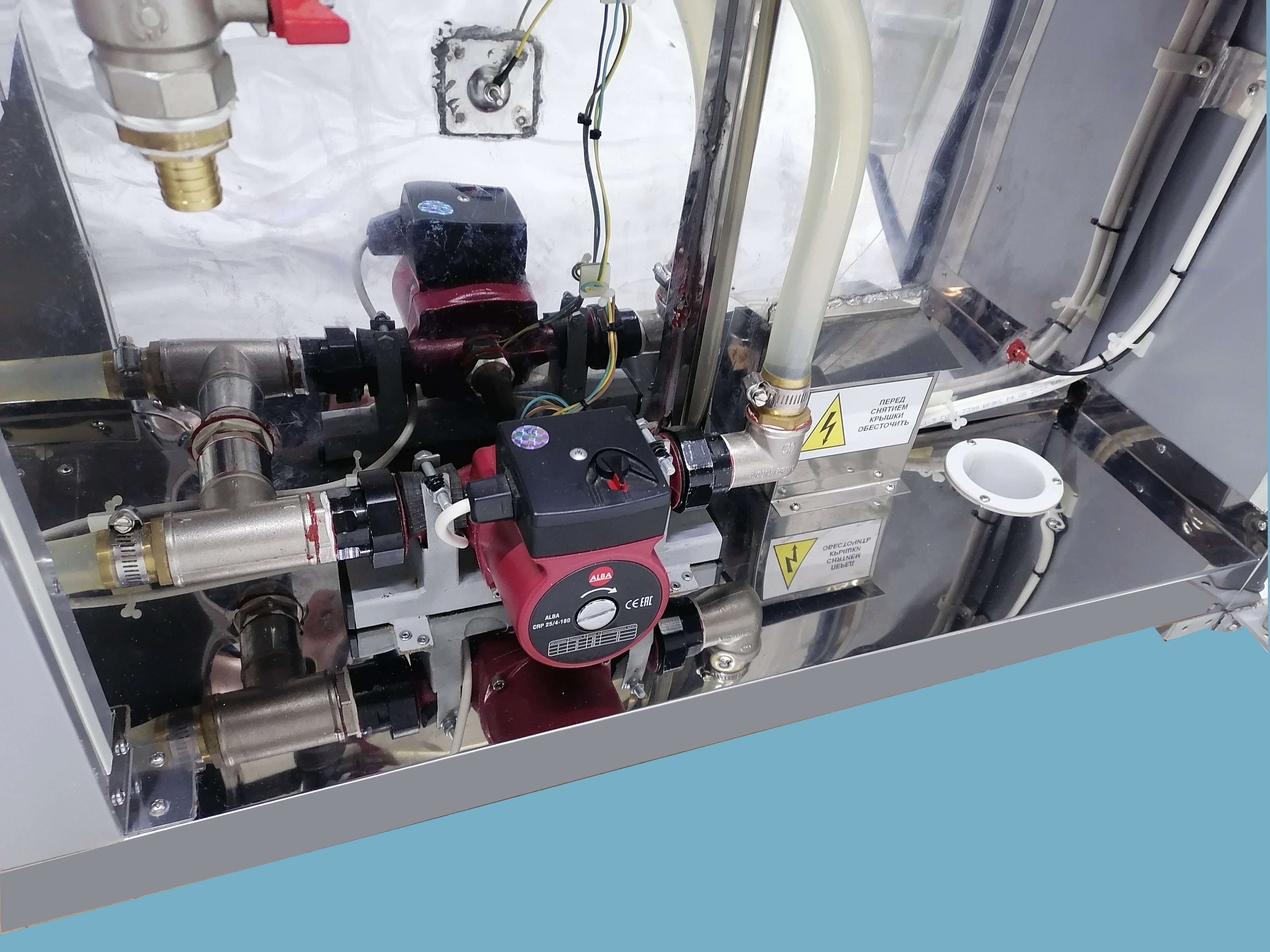В нижней половине располагается насосное отделение и емкость для воды или рассола из нержавеющей стали.