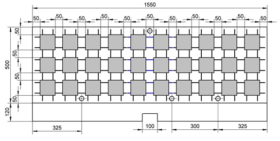 Схема расстановки образцов тяжелого бетона с ребром 150мм в 2 яруса.