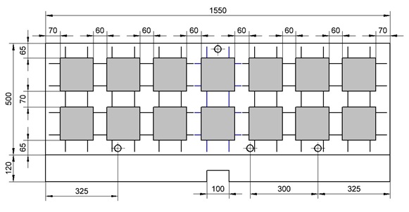 Схема расстановки образцов тяжелого бетона с ребром 100мм в 2 яруса.