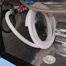 - Подача рассола производится циркуляционным насосом, что обеспечивает перемешивание рассола и соответственно разброс температуры рассола в рабочем контейнере минимален, что позволяет беспрепятственно проходить ежегодную аттестацию оборудования по показателю неравномерности температуры рассола в рабочем контейнере. У некоторых производителей подогрев среды оттаивания производится непосредственно в рабочем контейнере без обеспечения его перемешивания, из-за чего невозможно обеспечить допустимый диапазон разброса температуры рассола в рабочем контейнере. Наличие в системе очистительных фильтров обеспечивает достаточную чистоту циркулирующего рассола и исключает засорение ёмкости с рассолом элементами случайного мусора или фрагментами испытуемых образцов.
