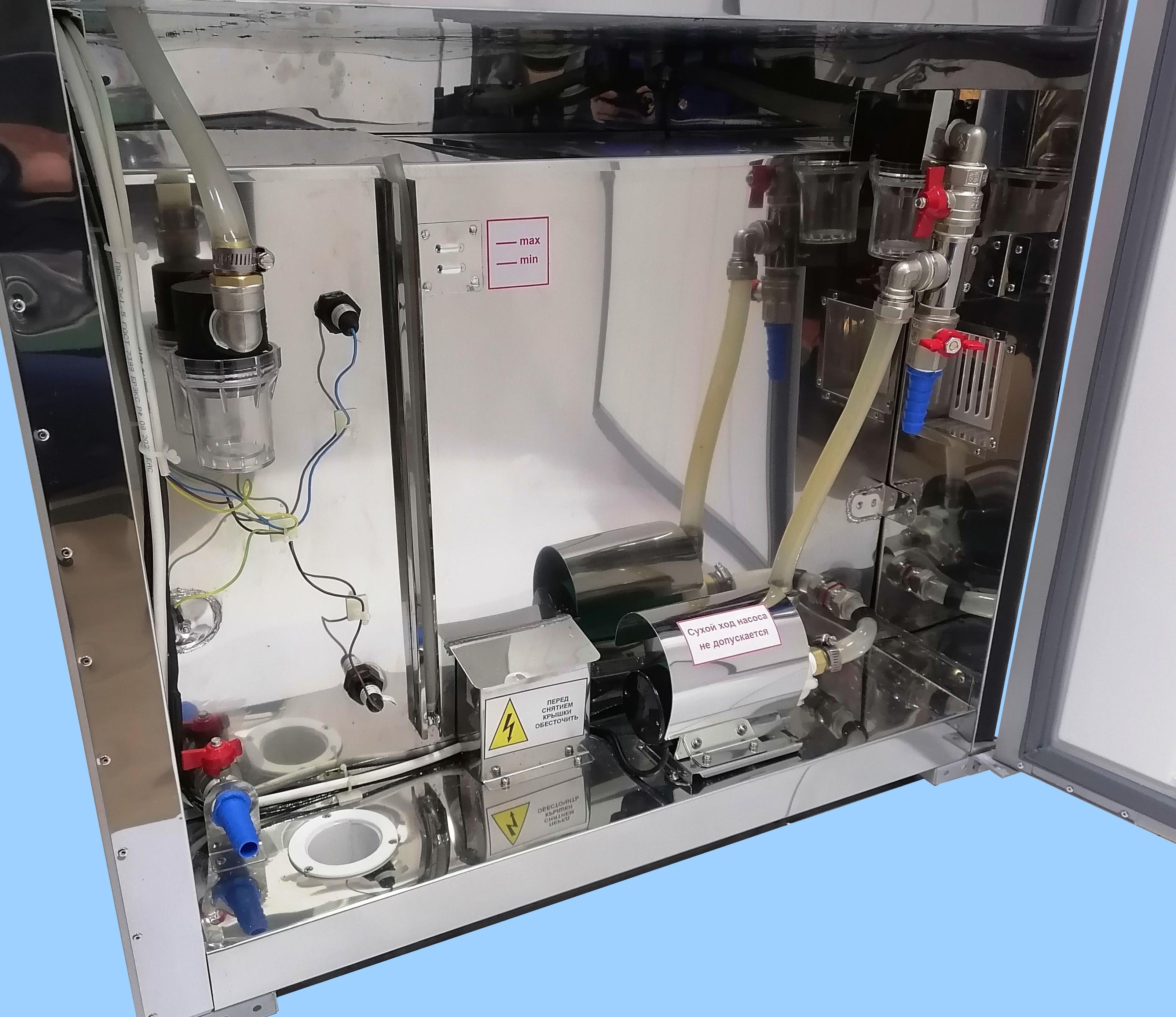 Конструкция АУМ-40-2 отличается от АБМ-40 тем, что все внешние и внутренние детали изготавливаются из нержавеющей стали и для циркуляции среды оттаивания применяется химический насос