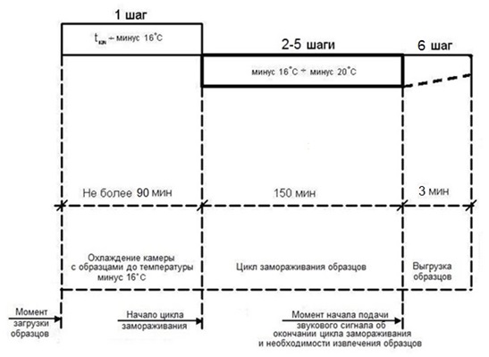 со 2-го по 5-ый шаги – замораживание образцов при температурном диапазоне