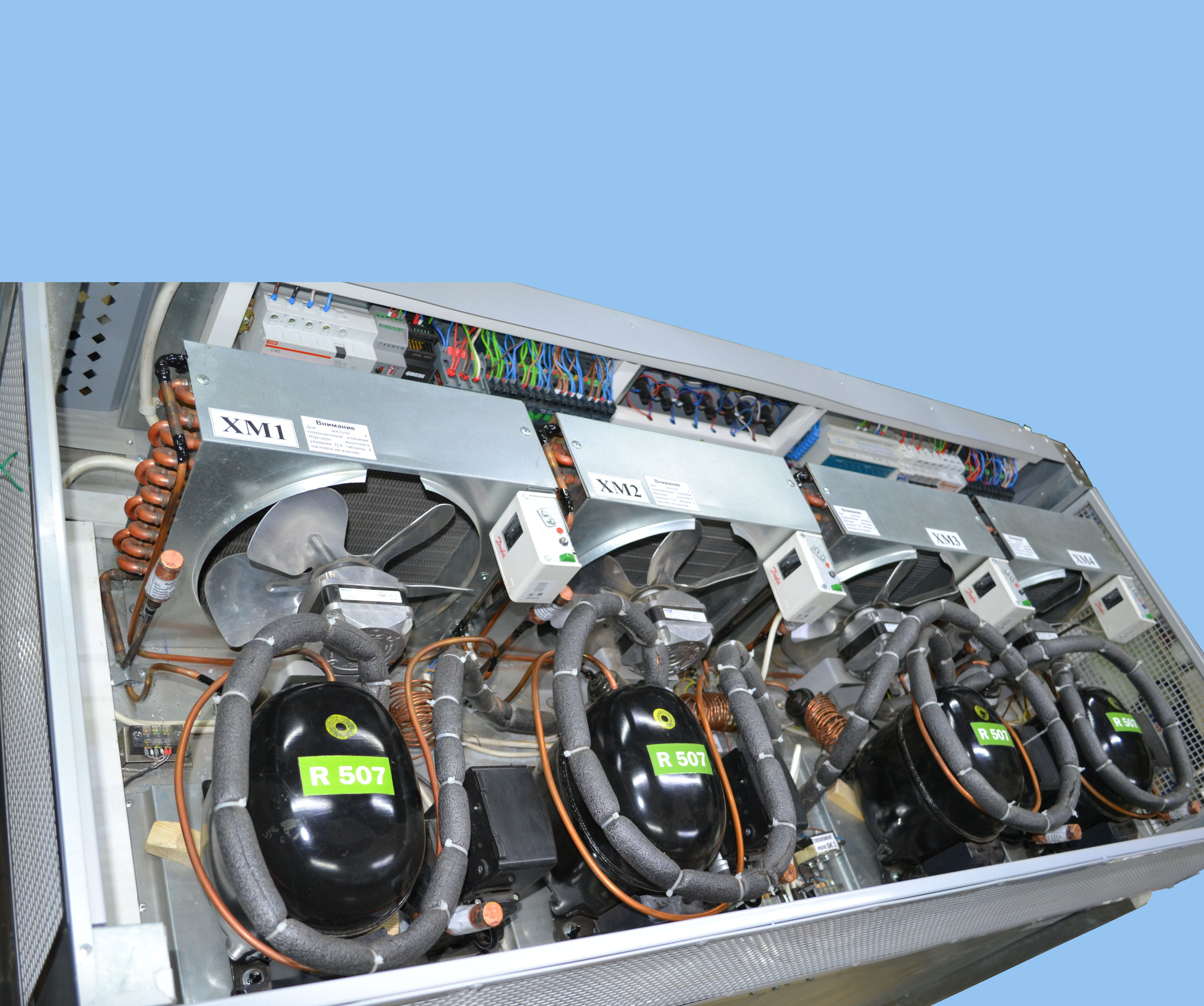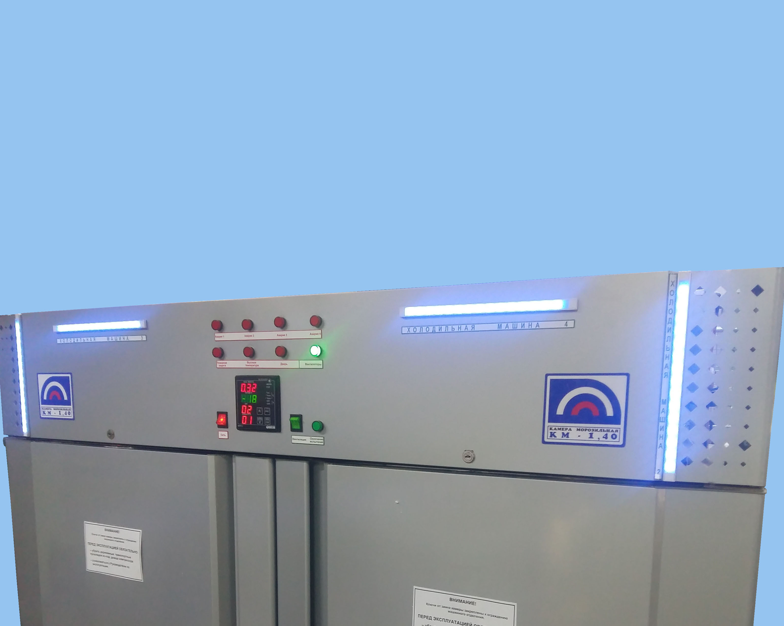 Управление работой холодильных машин и контроль за температурой в охлаждаемом объеме камеры осуществляет программируемый микропроцессор.