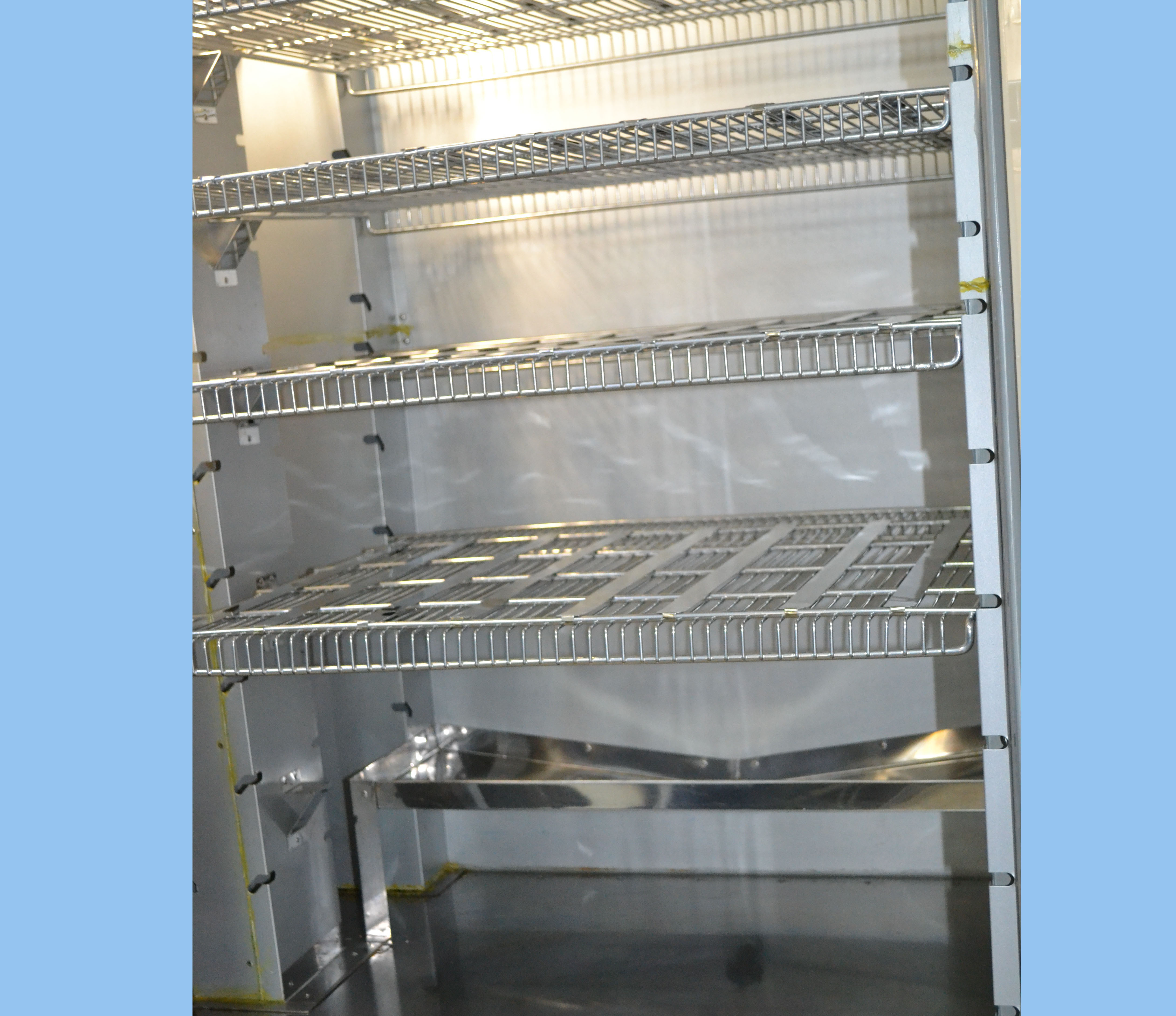 1. компактная и продуманная компоновочная схема конструкции камеры морозильной создаёт оптимальные габаритные размеры, что позволяет размещать её в помещении лаборатории на минимальной площади (S=1,3 м2) и проносить в лабораторию через стандартный дверной проём.