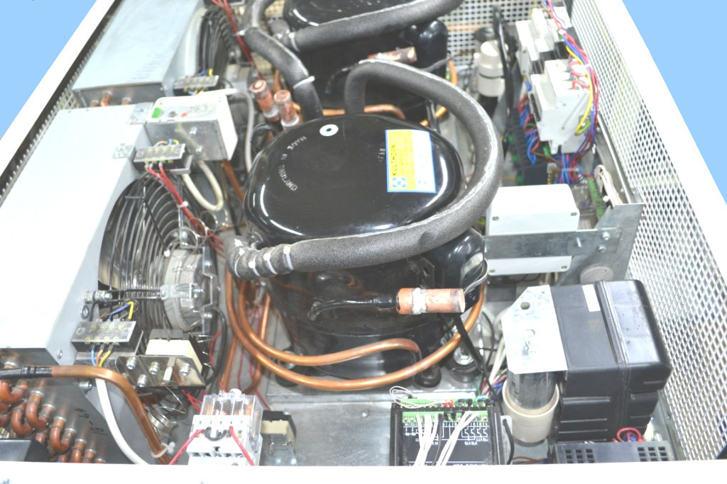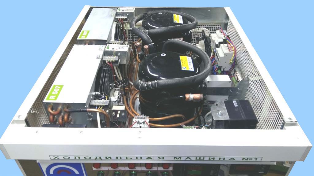 Управление работой холодильной машины осуществляет программируемый микропроцессор.