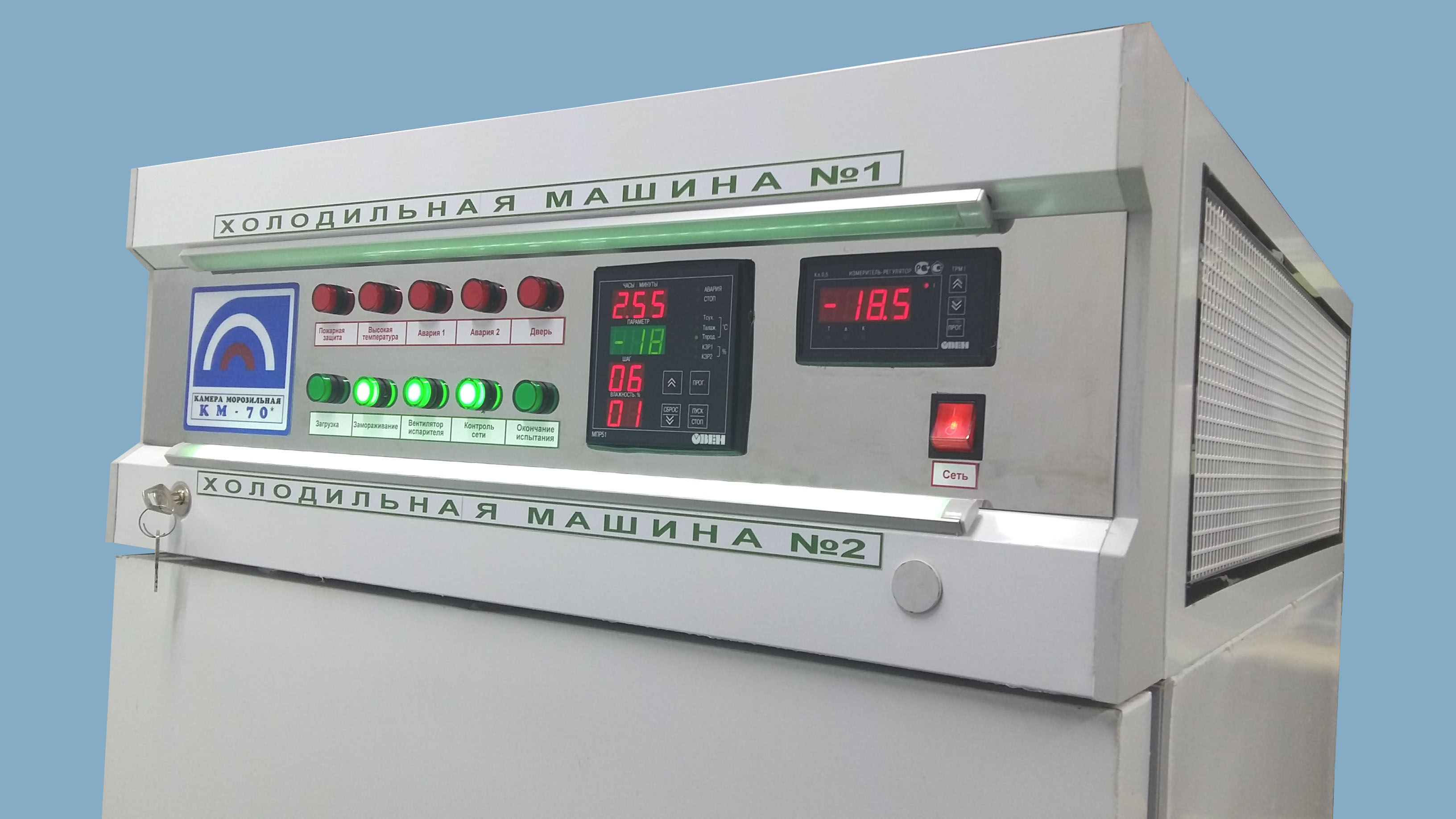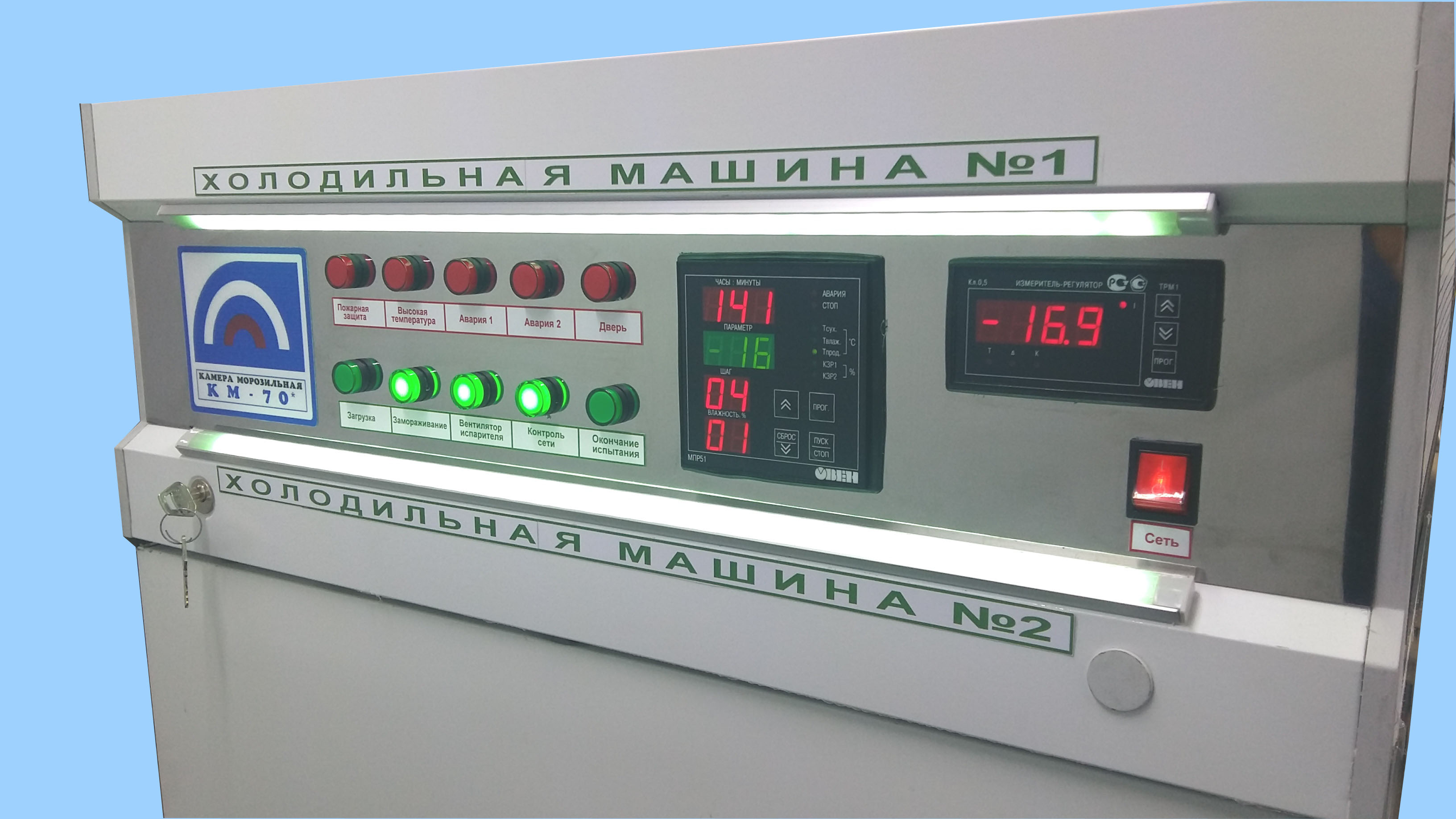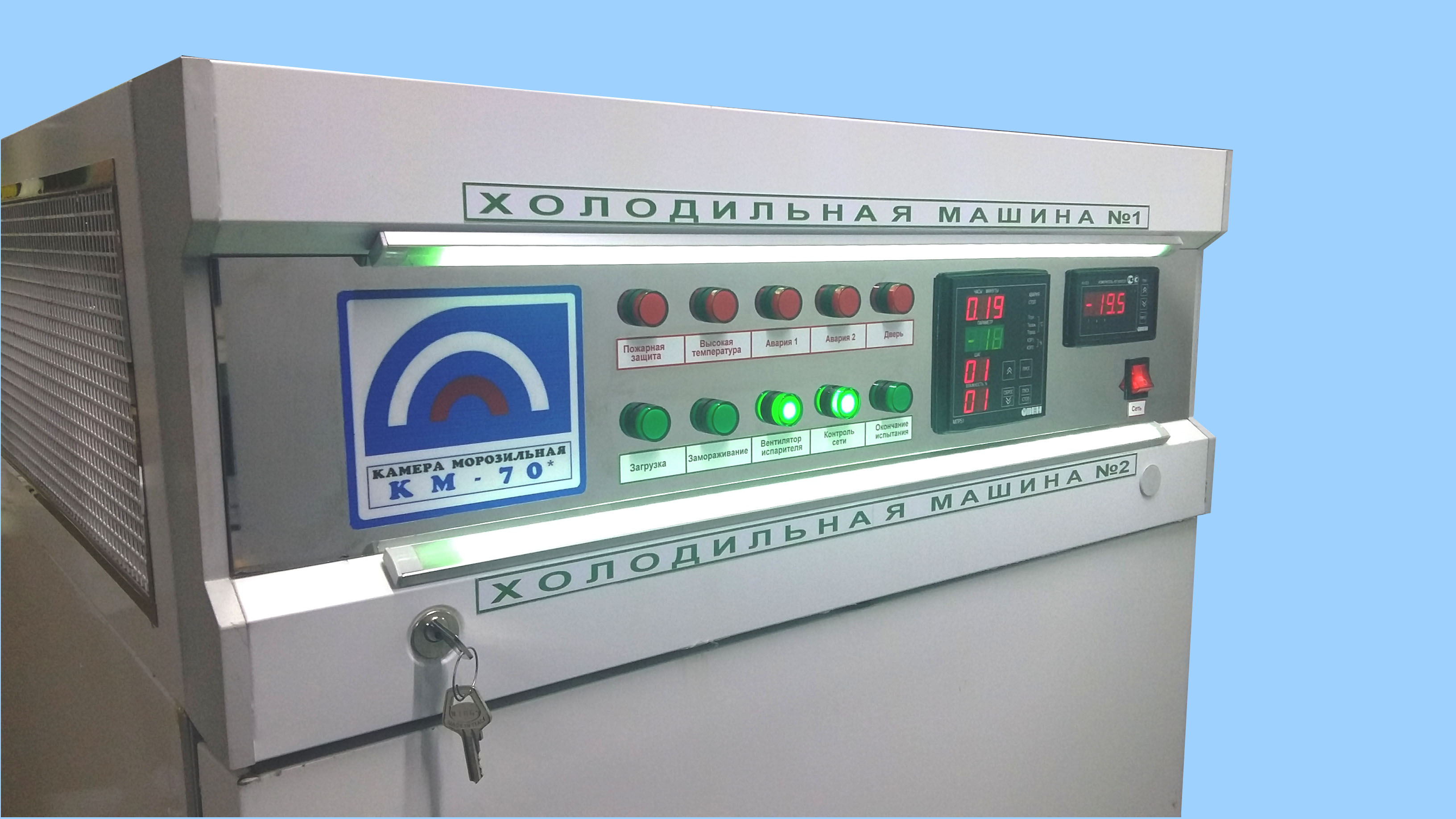 Такой алгоритм работы позволяет достичь минимально возможного времени достижения необходимой температуры в камере после загрузки образцов, равномерного использования технического ресурса обеих холодильных машин и минимального расхода электроэнергии.