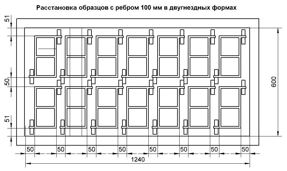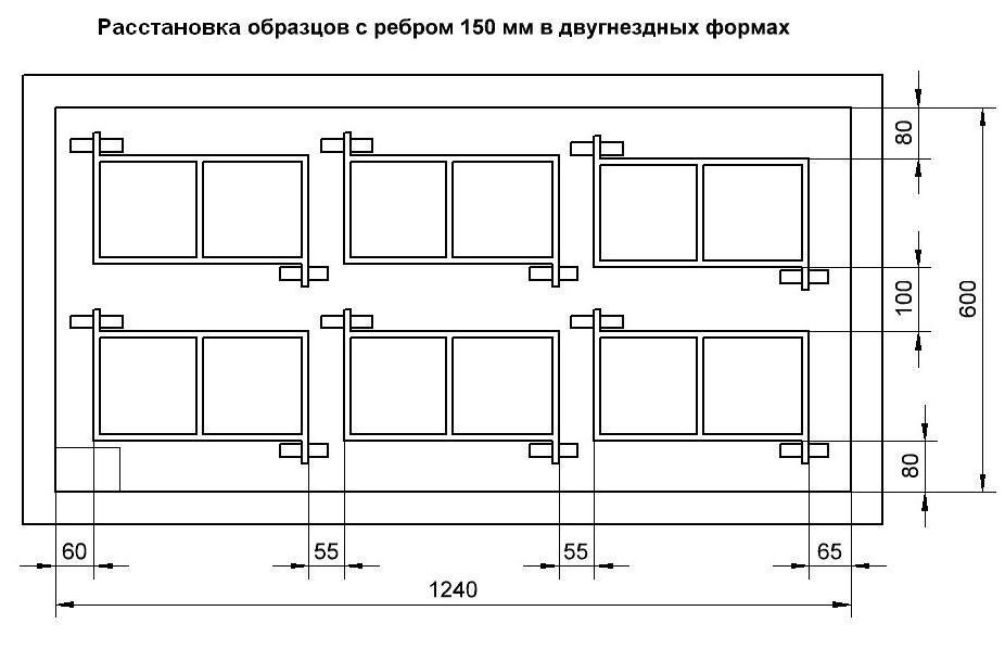 | Количество образцов бетона в двухгнездных формах с ребром 100 мм/150мм, шт. |