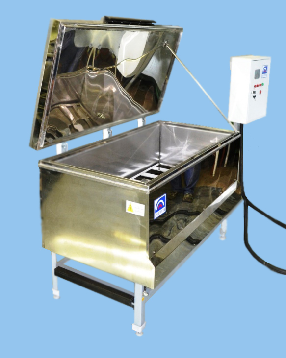 Пульт управления имеет дистанционность 3 м (дистанционность может изменяться по заявке заказчика) и соединяется с ванной при помощи металлорукова из коррозионностойкого материала.